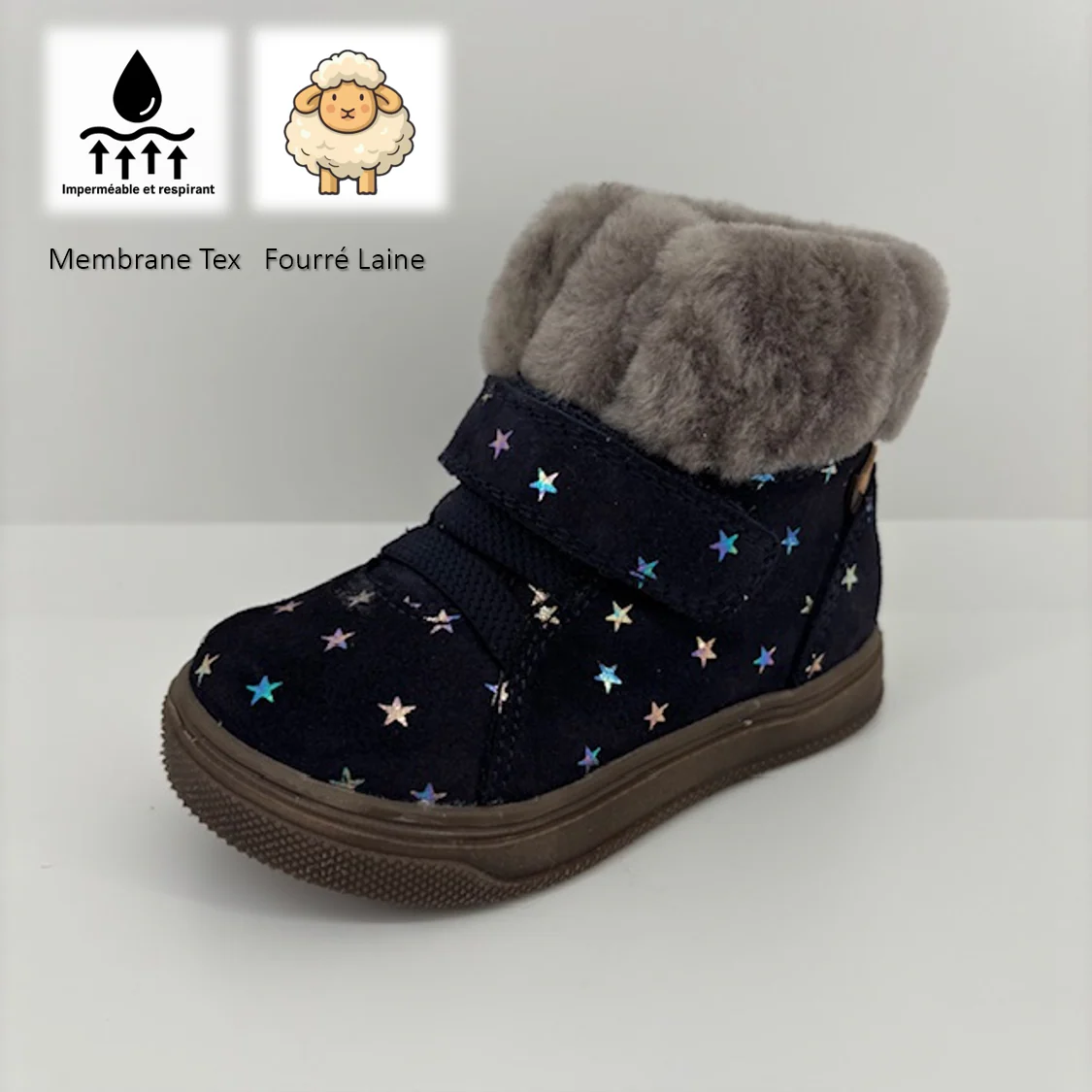 Leur doublure en laine chaude et naturelle assure un confort thermique tout au long de la journée, tandis que leur forme a été pensée pour s’adapter à toutes les morphologies de pied, garantissant un chaussant ajusté. Parfaits pour l’école, les balades en forêt ou les jeux d’hiver, ces bottillons conjuguent performance technique et bien-être.